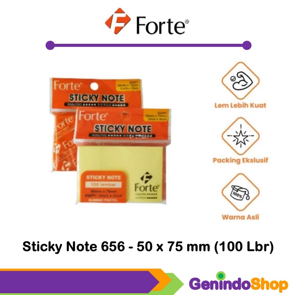 Sticky Note Forte menjadi solusi yang tepat bagi Anda untuk mencatat memo dengan mudah dengan kertas kualitas terbaik dan dapat ditempel dimana saja. Catatan-catatan penting kini lebih sistematis dan mudah dilihat dengan Sticky Note Forte!