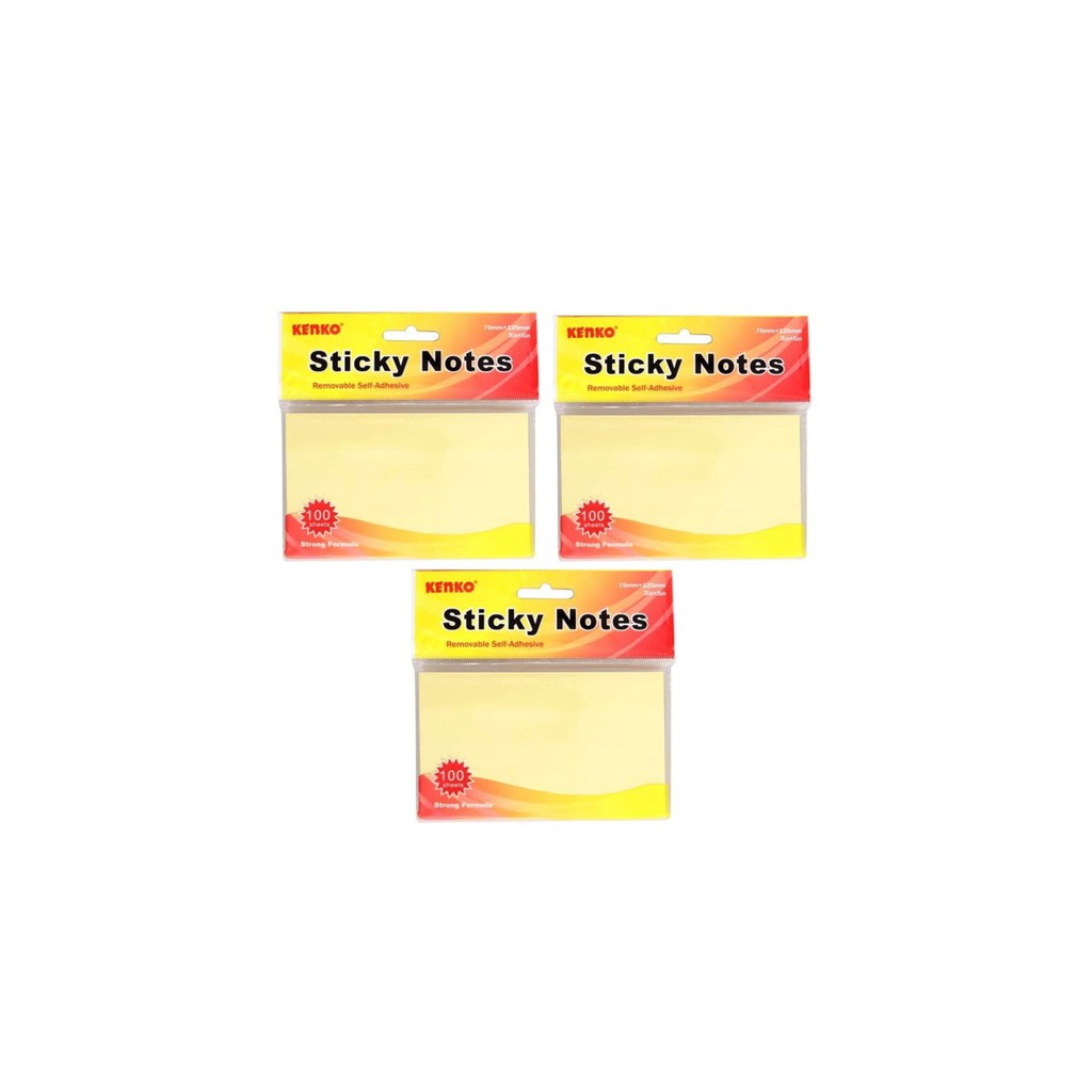 Sticky Notes merk Kenko dengan bentuk segi empat dan dapat ditulis dengan pena, banyak digunakan untuk menandai/memberi catatan kaki pada lembar buku atau dokumen. Berkualitas, variatif dan murah.