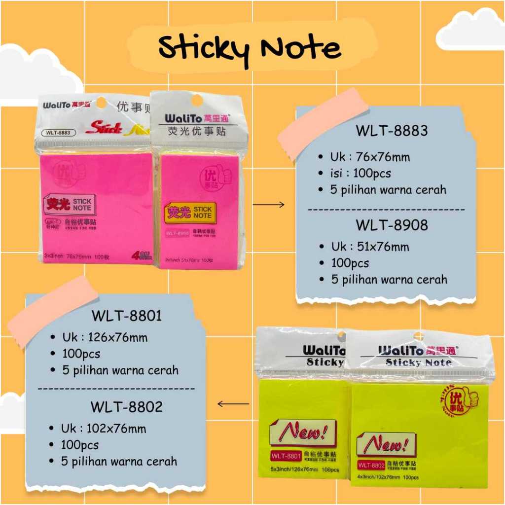 Sticky Note Memo Tempel Polos Walito