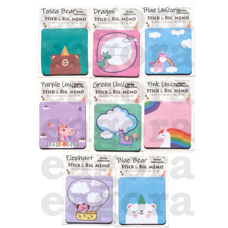 Sticky Notes Bear Unicorn Dragon Lucu Set Memo Unik Note