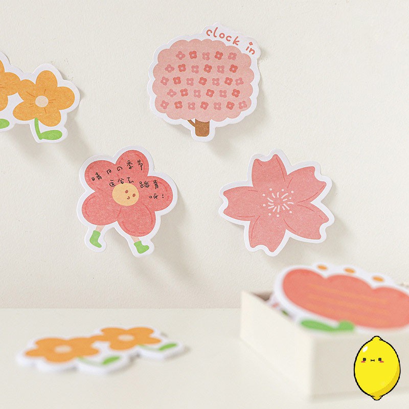 Enam motif post-its yang lucu bisa kamu temukan dalam kotak Fresh Message Sticky Notes Box Set ini. Bunga, buah, binatang, dan tidak ketinggalan makanan yang imut-imut senantiasa akan mata segar dan hati senang setiap membaca tulisanmu.