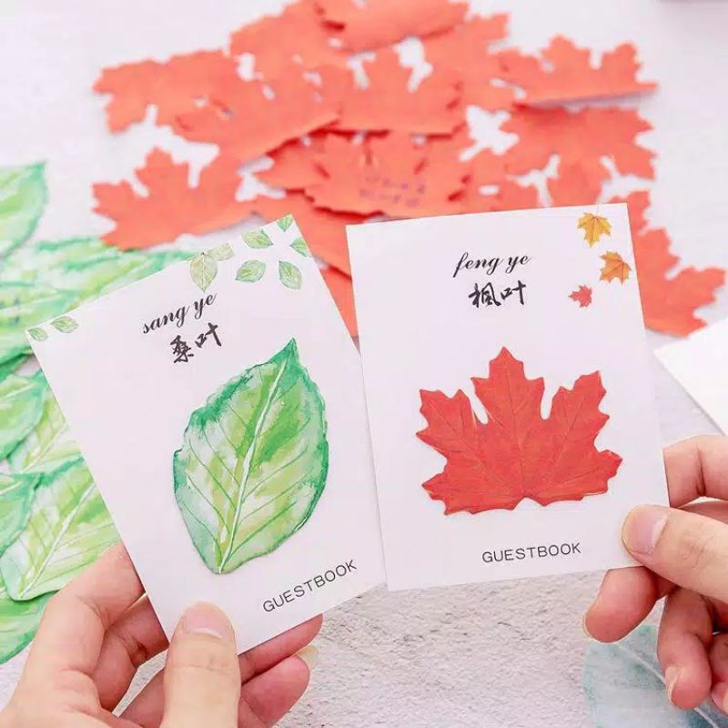 Bosen nulis note di kertas sticky notes polos? Inii jalan ninjamuu!! Bentuknya unikkk dan lucuu, warnanya juga bagus bingit selain manjakan matamu krn warnanya gak gonjreng, sticky notes daun ini juga akan bikin buku,dinding, meja atau apapun tempat yg kamu biasa tempelin sticky notes jadi cantik dan aesthetic