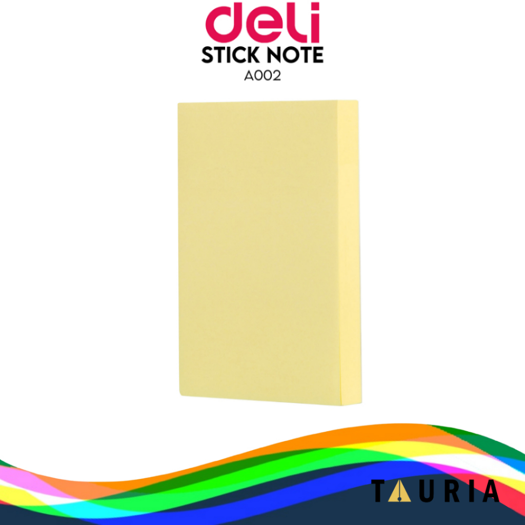 Stick Notes merek Deli warna kuning ukuran 76x51 mm. Harga tertera merupakan harga per pack yang berisi 100 lembar.