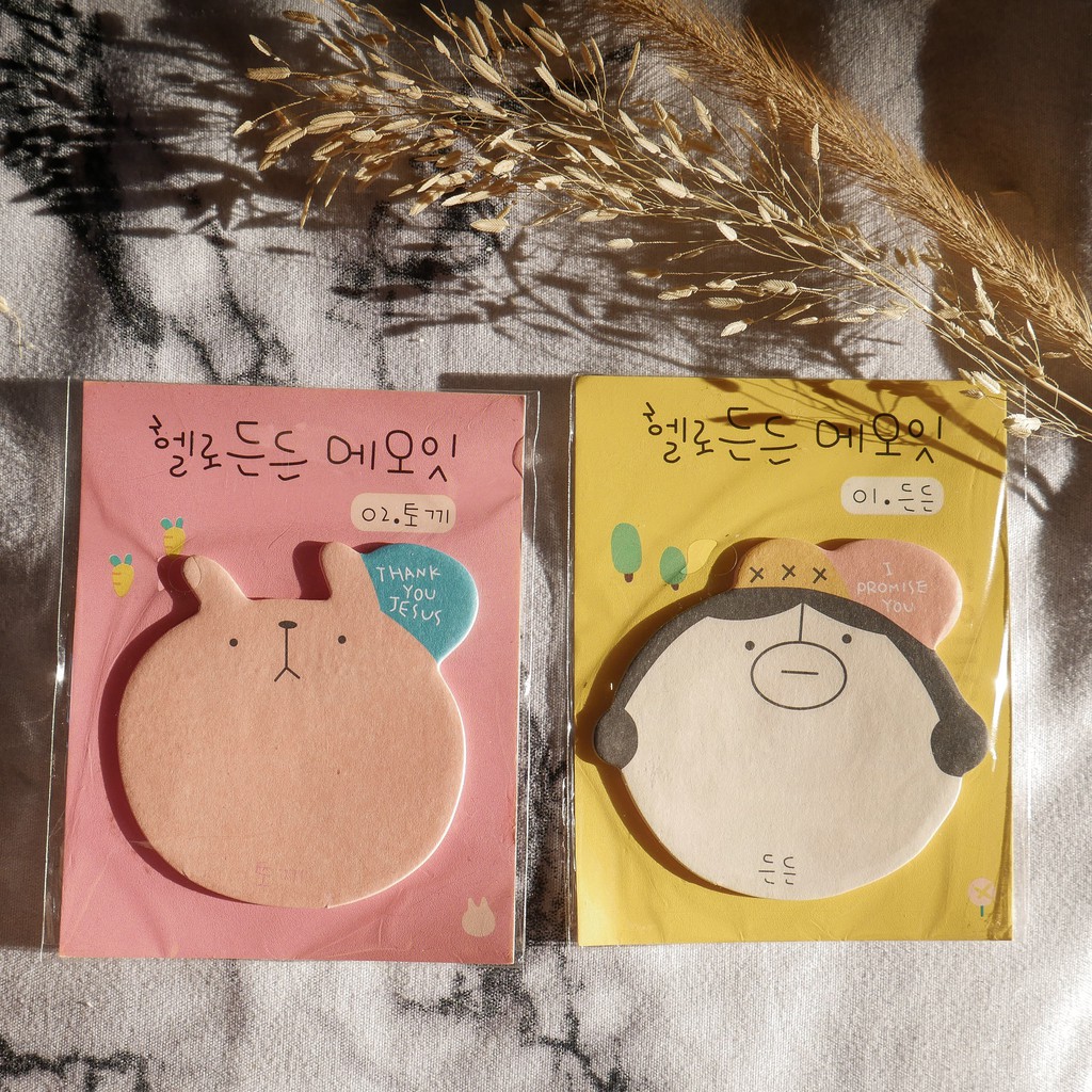 Sticky Notes berkarakter orang dan kelinci. Bisa di tempel kan di buku, catatan, dan di barang kesukaan anda.