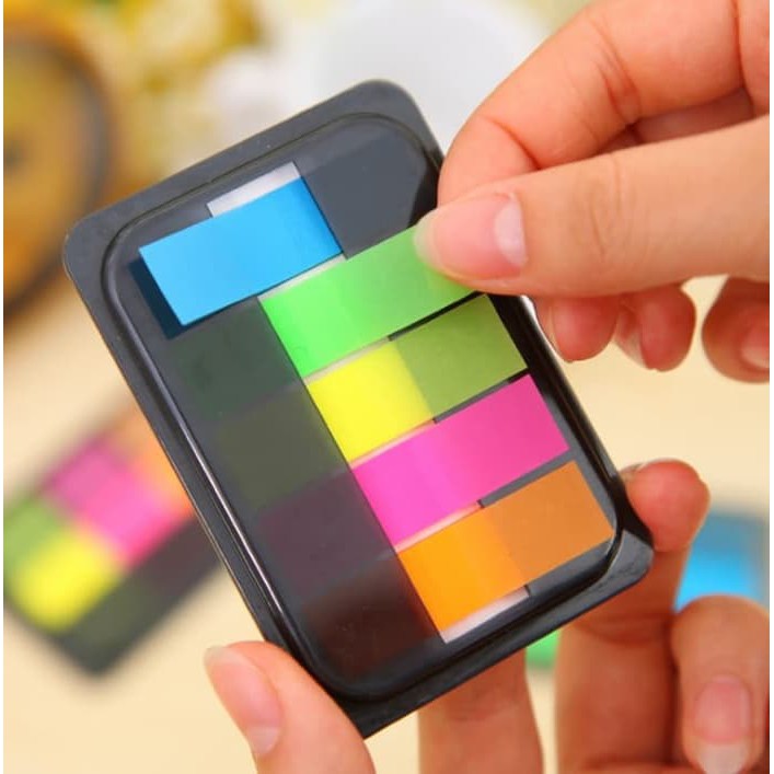 Sticky notes (catatan dengan perekat) kecil berbentuk persegi panjang dengan 5 warna berbeda (masing-masing warna terdiri dari lebih kurang 100 lembar). Ukurannya yang mini membuat sticky notes ini sesuai dipakai sebagai catatan memo atau penanda buku halaman.