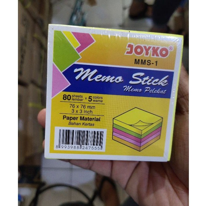 Sticky note Joyko ini dalam satu pak terdapat 5 warna dengan lem perekat yang baik.
