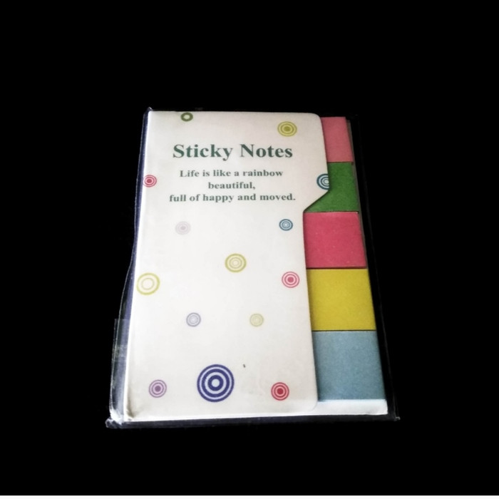 Sticky notes (catatan dengan perekat) kecil berbentuk persegi panjang dengan 5 warna berbeda (masing-masing warna terdiri dari lebih kurang 20 lembar). Ukurannya yang mini membuat sticky notes ini sesuai dipakai sebagai catatan memo atau penanda buku halaman.
