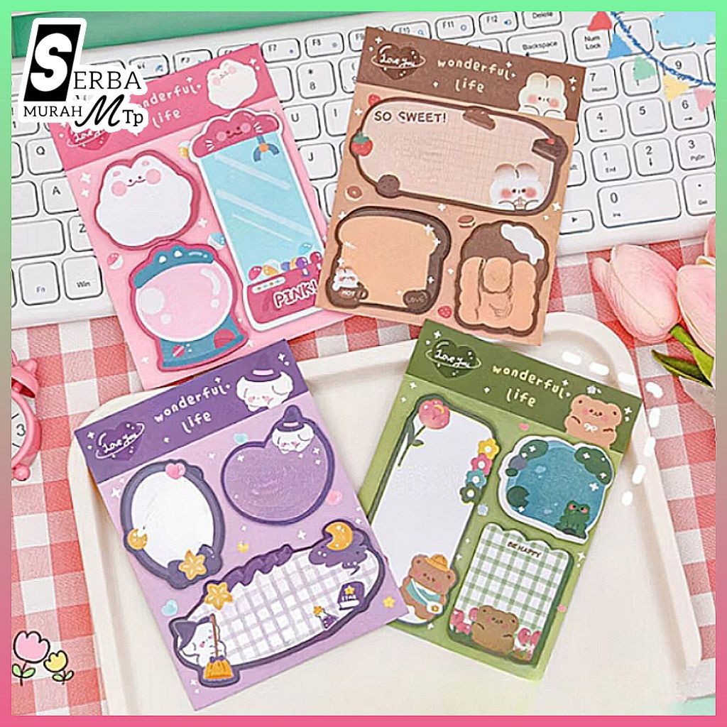 Sticky Notes Set 3 Motif Per Pack Model Lucu Karakter Mini Memo Pad Stick Note