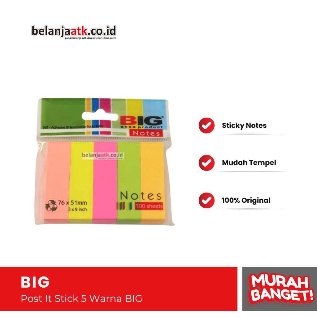 • Nama Produk : Post It Stick 5 Warna BIG