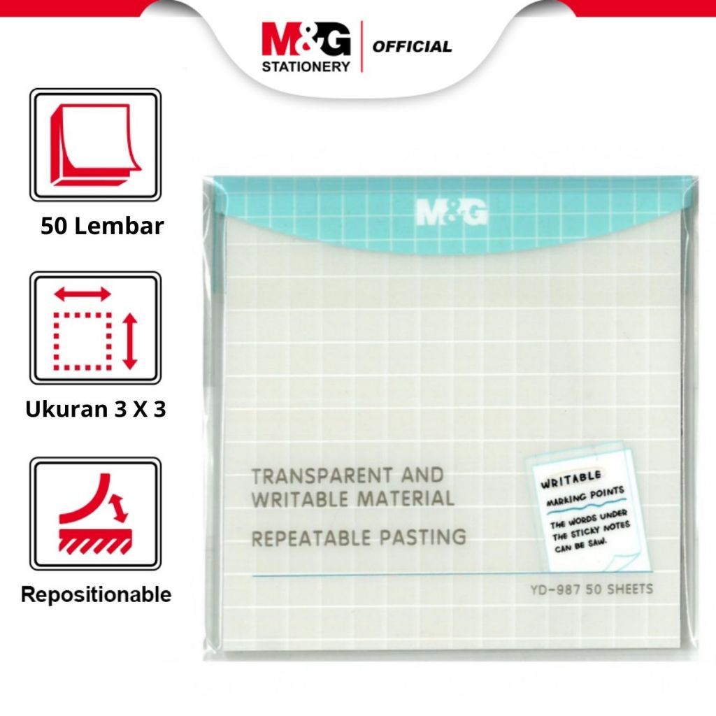 M&G Sticky Notes Transparent PET Material 3X3 50 sheets