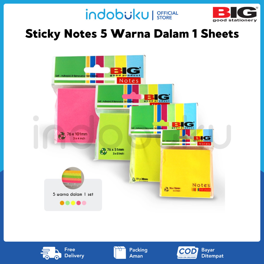 Sticky Notes Warna BIG/ Note Kertas BIG 5 Warna Dalam 1 Sheets