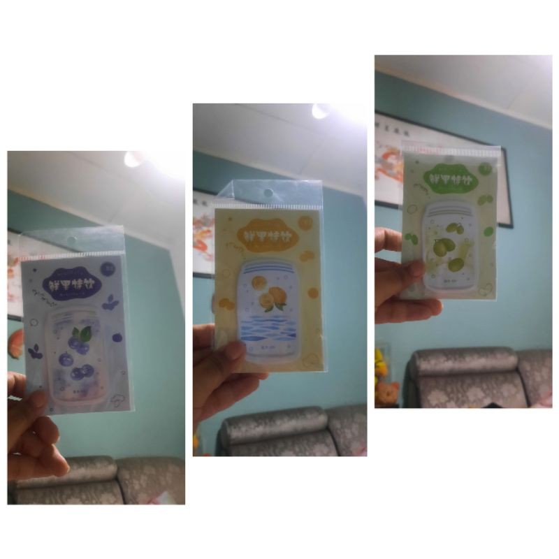 Sticky Notes yang berbentuk seperi Kaleng minuman kemasan yang bertemakan musim panas ini sangat untuk dengan ukuran 13*8,5 cm dan berisikan 30 lembar dengan 3 gambar yaitu :