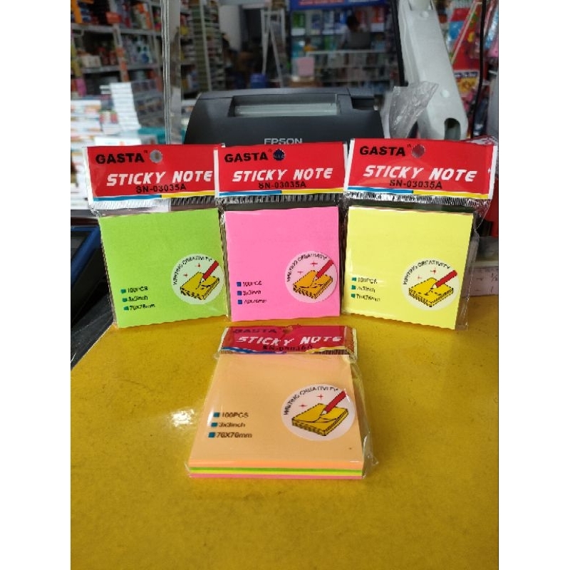 post it/sticky note merk Gasta 76x76mm terdiri dr 5wrn isi 100sheet.