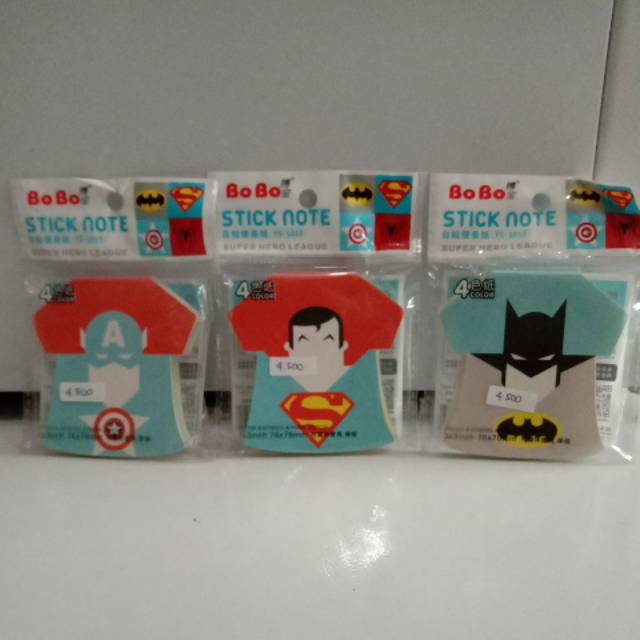 Memo sticky note isi 80 pcs dengan 4 warna (kuning, merah, biru, hijau).