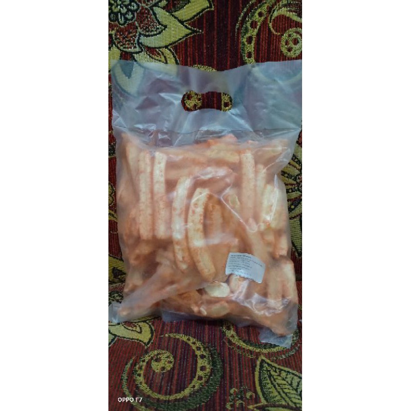 terbuat dari tepung kentang,rasane gurih pedas..cocok buat ngemil dimana aja...