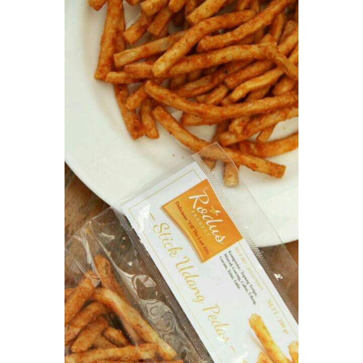 Suka dengan stick bawang yang biasa jadi cemilan? Nah yang ini disiram lagi dengan kuah pedas manis campuran udang kering.