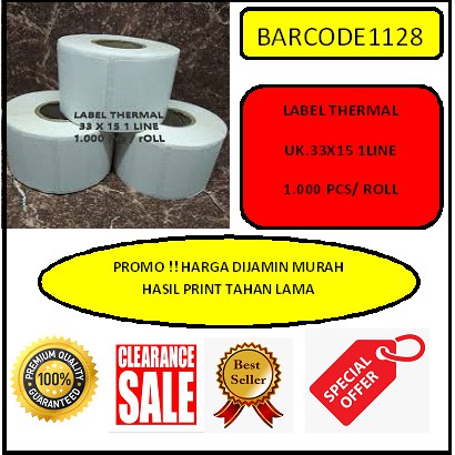 Deskripsi Stiker 33X15mm 1Line 1000pcs,Direct Thermal Label stiker Barcode