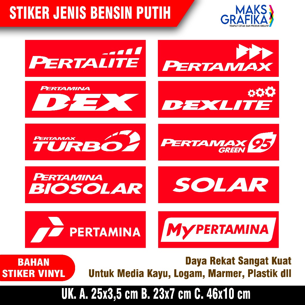 Stiker Pertamax, Pertamax Green, Pertalite, Dexlite, Solar, Pertamina Dex, Pertamax Turbo, Biosolar, Premium