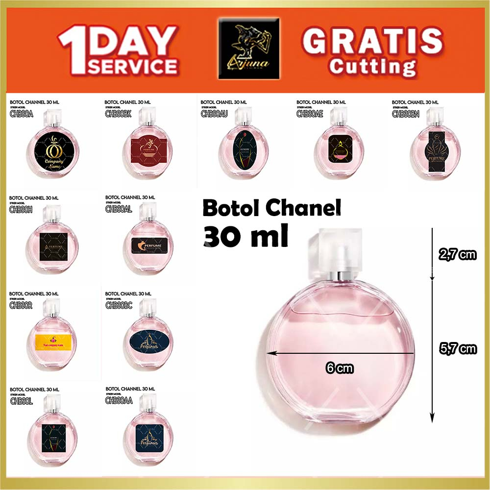 Stiker Botol Parfum Ch Chanel 30 ml Bulat Parfume Sticker Label Custom Bahan Premium Transparan