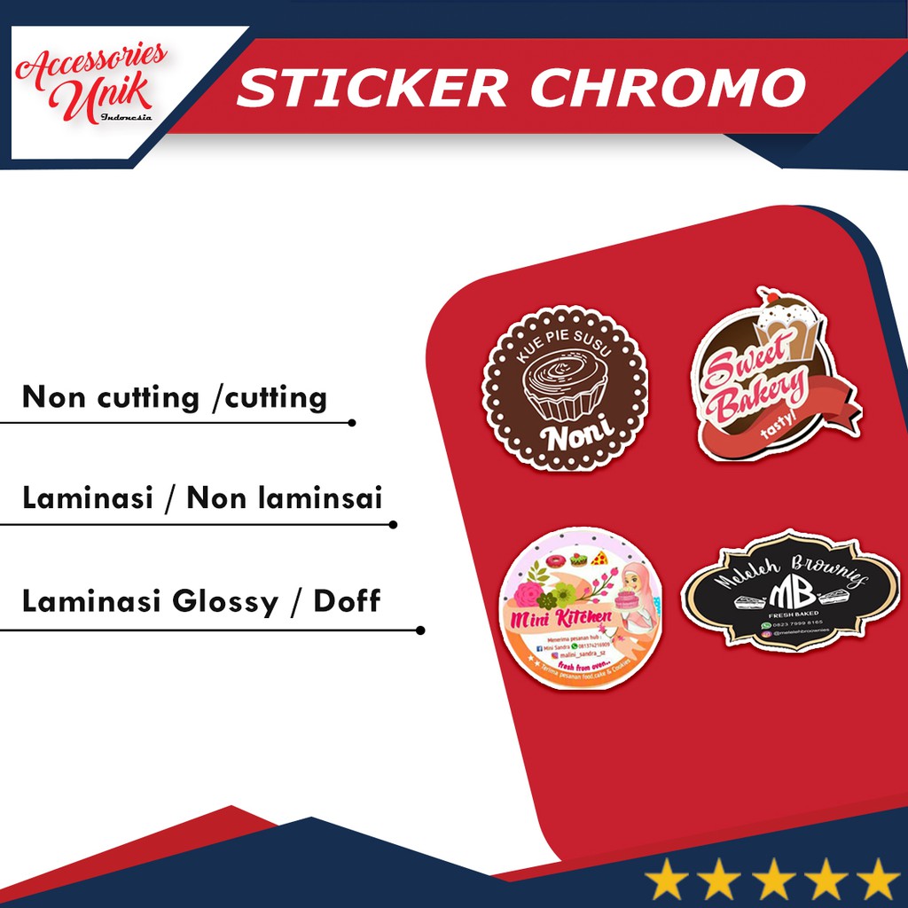 Stiker Chromo Label Kemasan Makanan Logo Bulat Kotak Custom Print Sticker