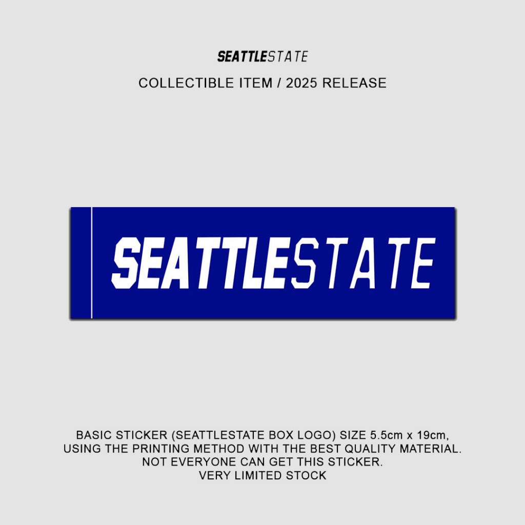 Basic sticker (seattlestate box logo) size 5.5cm x 19cm, using the printing method with the best quality material. not everyone can get this sticker. very limited stock.
