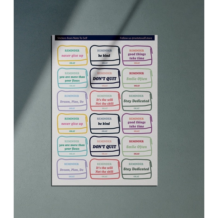 Pilihan beragam stickers dengan warna-warni Reminder Series.