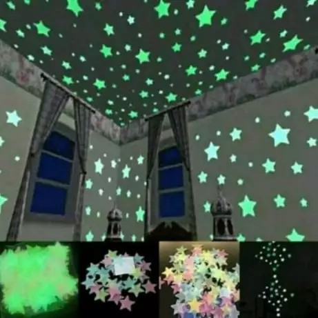 Stiker dinding (wall sticker) motif bintang Glow in The Dark.