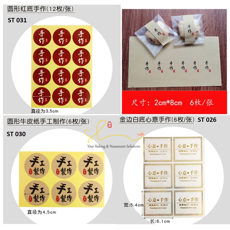 Stiker Handmade Homemade Chinese Hampers Gift Label Sticker Mooncake 3pcs