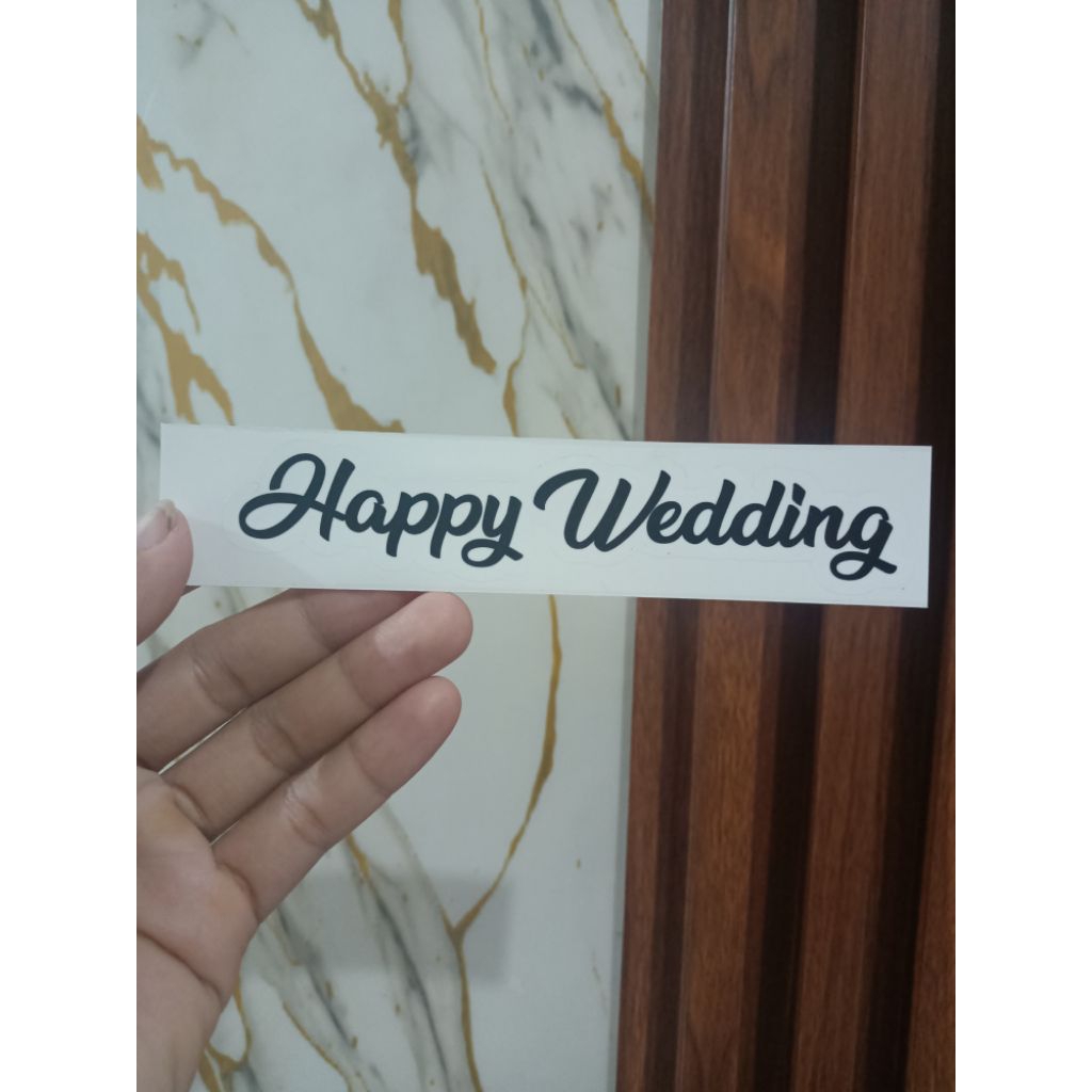 Stiker Vinyl Transparan Happy Weddy warna hitam