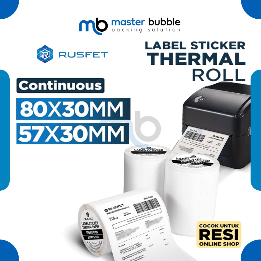 Stiker Kertas Termal Label RUSFET Sticker Paper Thermal Printer Resi Per Roll - Continous NO CUTTER