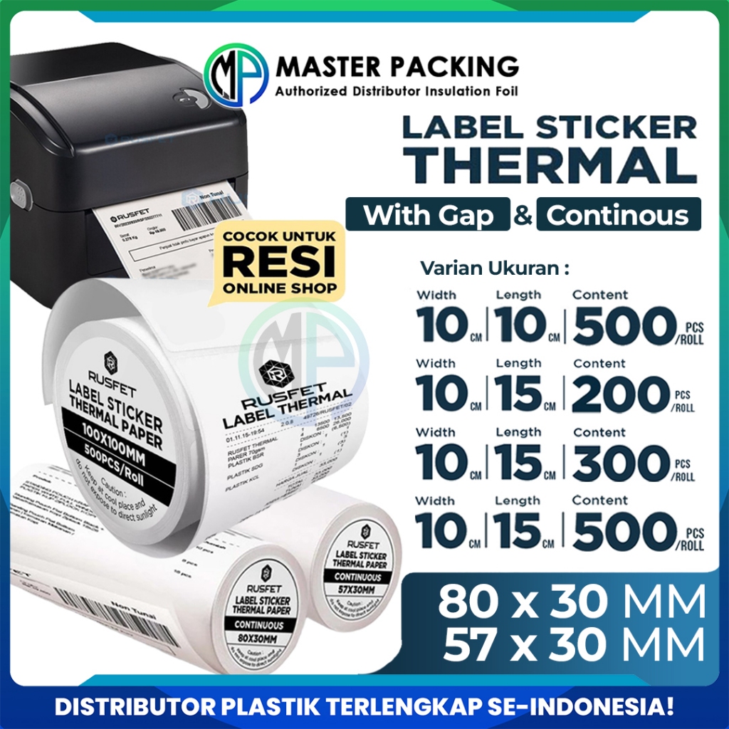 Stiker Kertas Termal Label RUSFET Sticker Paper Thermal Printer Resi Per Roll - Core and Continous