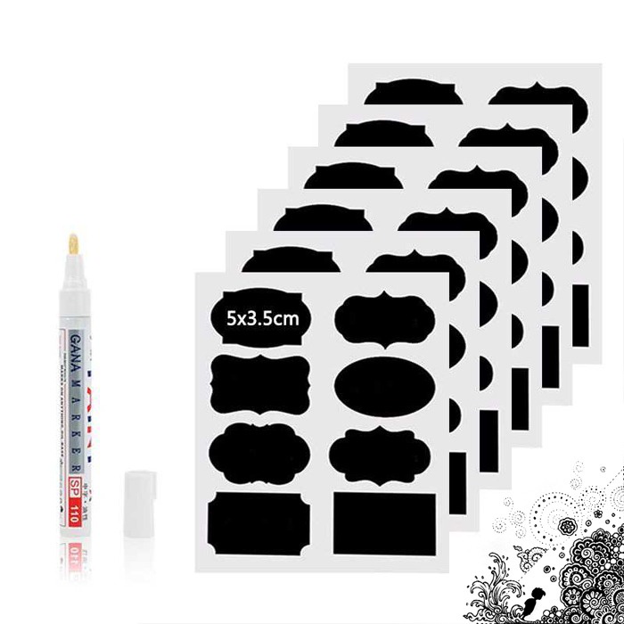 - Isi Paket: 5x Stiker Label Blackboard Papan Tulis + Marker
