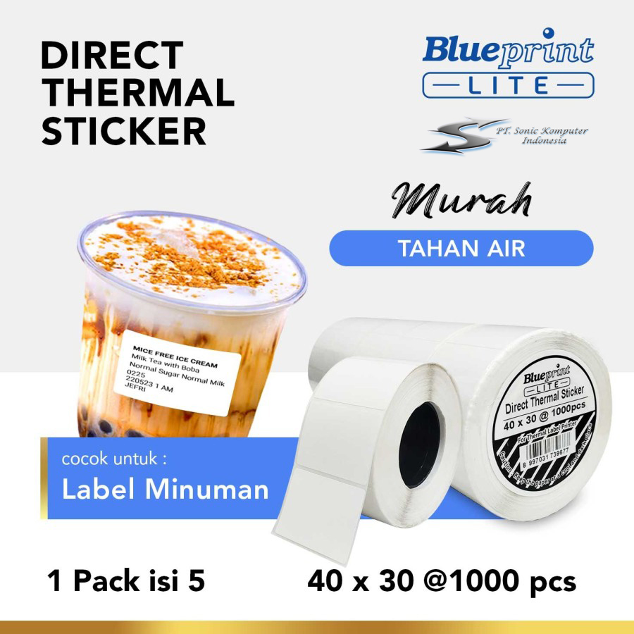 Stiker Barcode Label / Sticker Barcode Thermal BLUEPRINT Ukuran40mm X 30mm