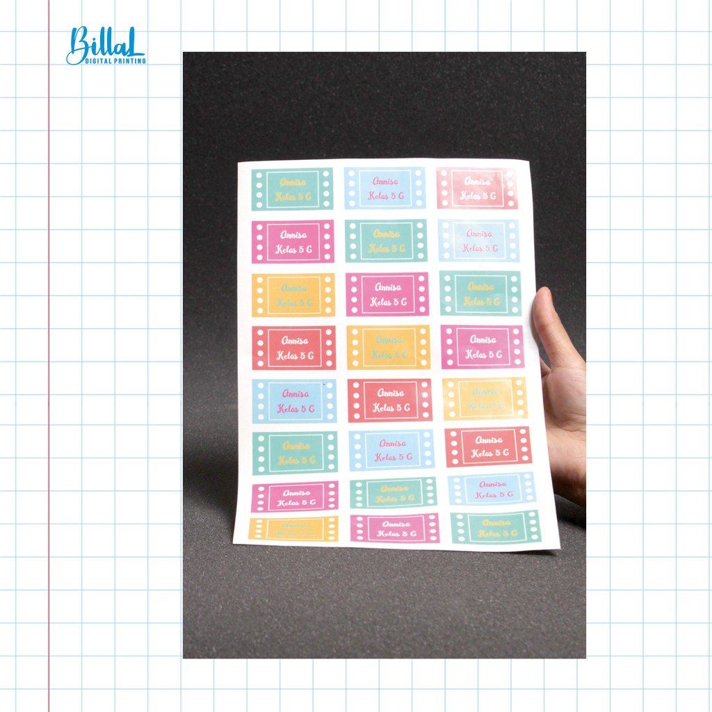 Deskripsi Stiker Label Nama Anak Waterproof Transparant 2 Baris - Design Ticket