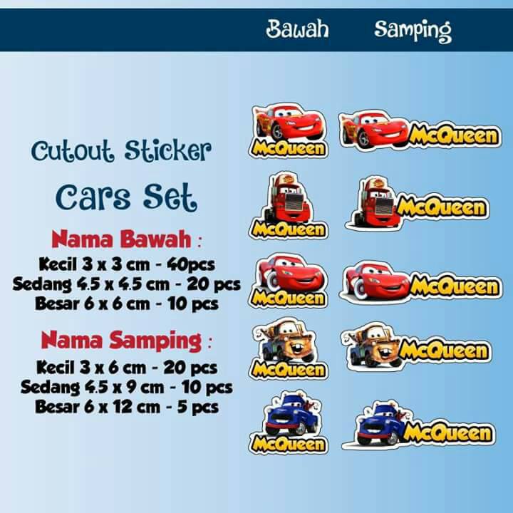 Stiker Label Nama Waterproof Cutout Cars (Set)