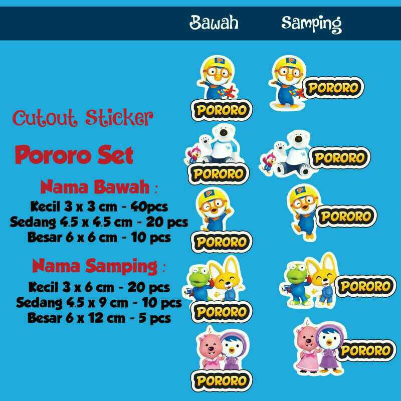 Stiker Label Nama Waterproof Cutout Pororo (Set)