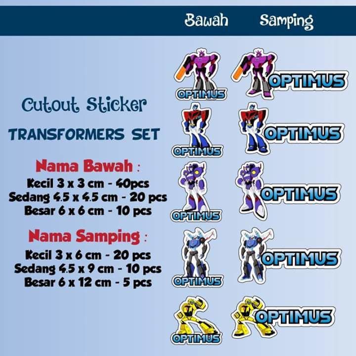 Stiker Label Nama Waterproof Cutout Transformers (Set)