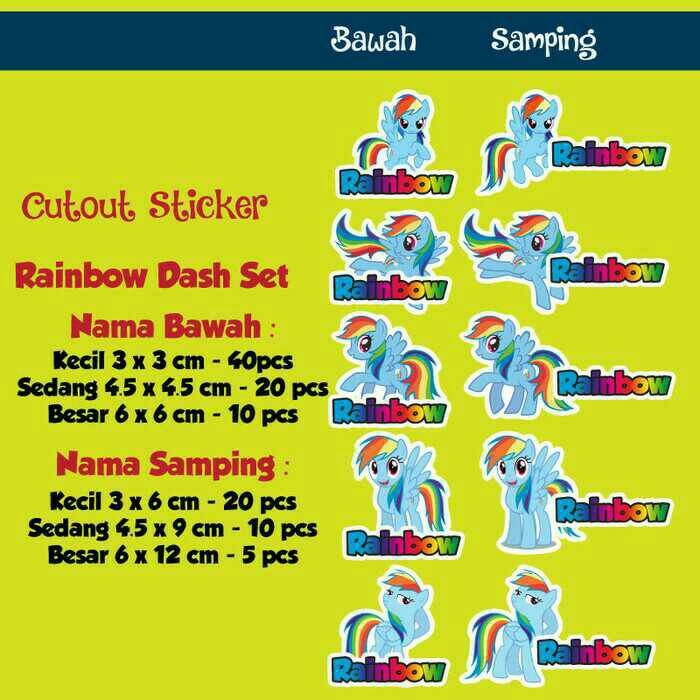 Stiker Label Nama Waterproof Rainbow Dash (Set)