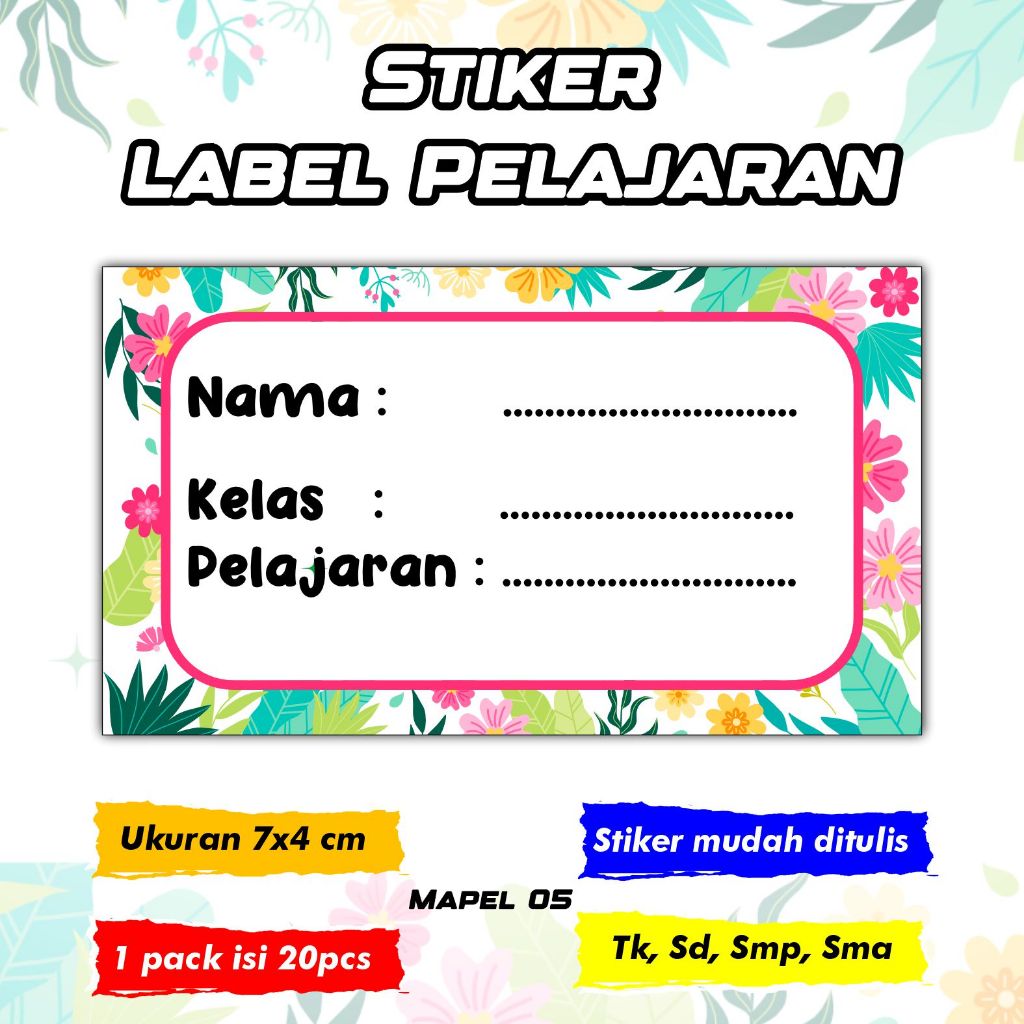 Stiker ini biasanya digunakan untuk menandai buku, folder, atau alat tulis dengan nama pelajaran tertentu,