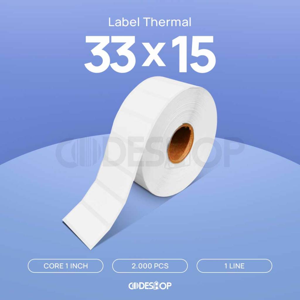Stiker Label Thermal 33x15 mm Codeshop 1 Line Core 1 Inch Isi 2000 Pcs Printer Termal