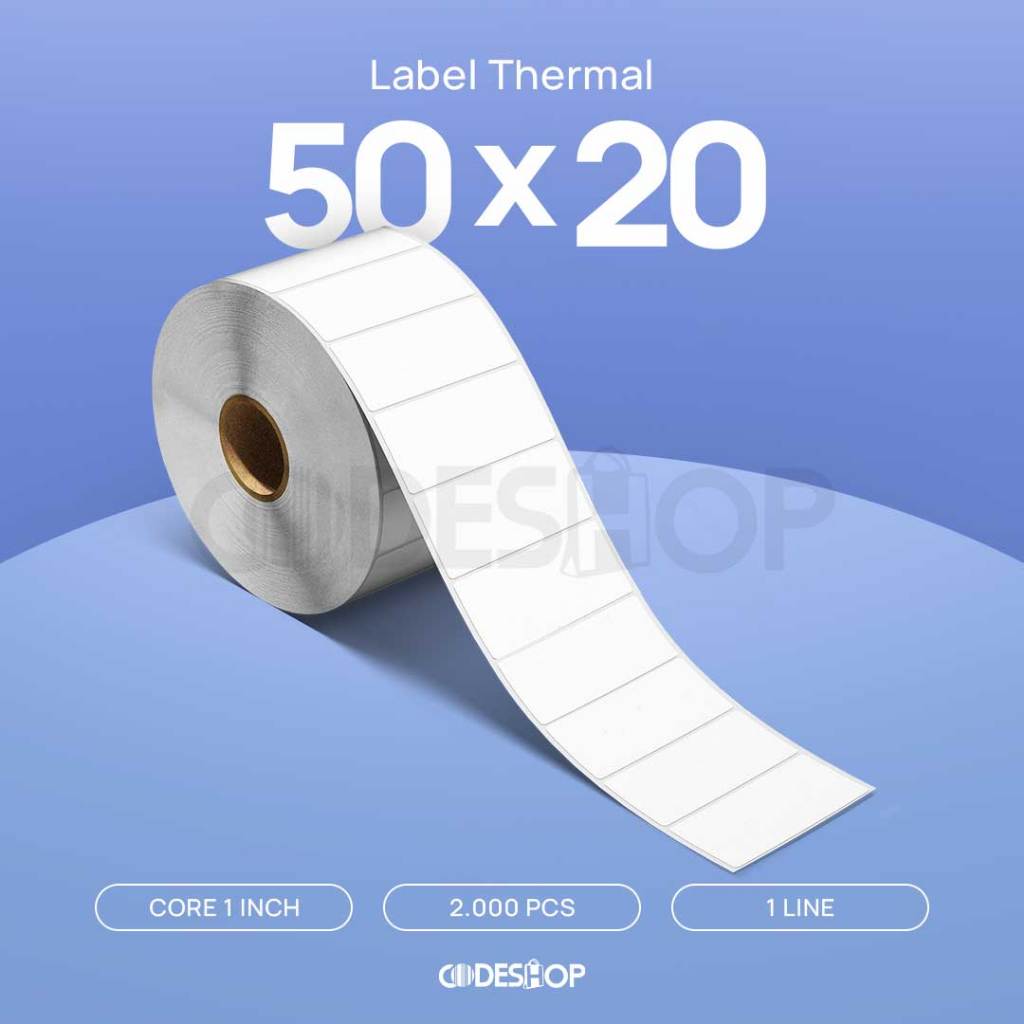 Stiker Label Thermal 50x20 mm Codeshop 1 Line Core 1 Inch Isi 2000 Pcs Printer Termal