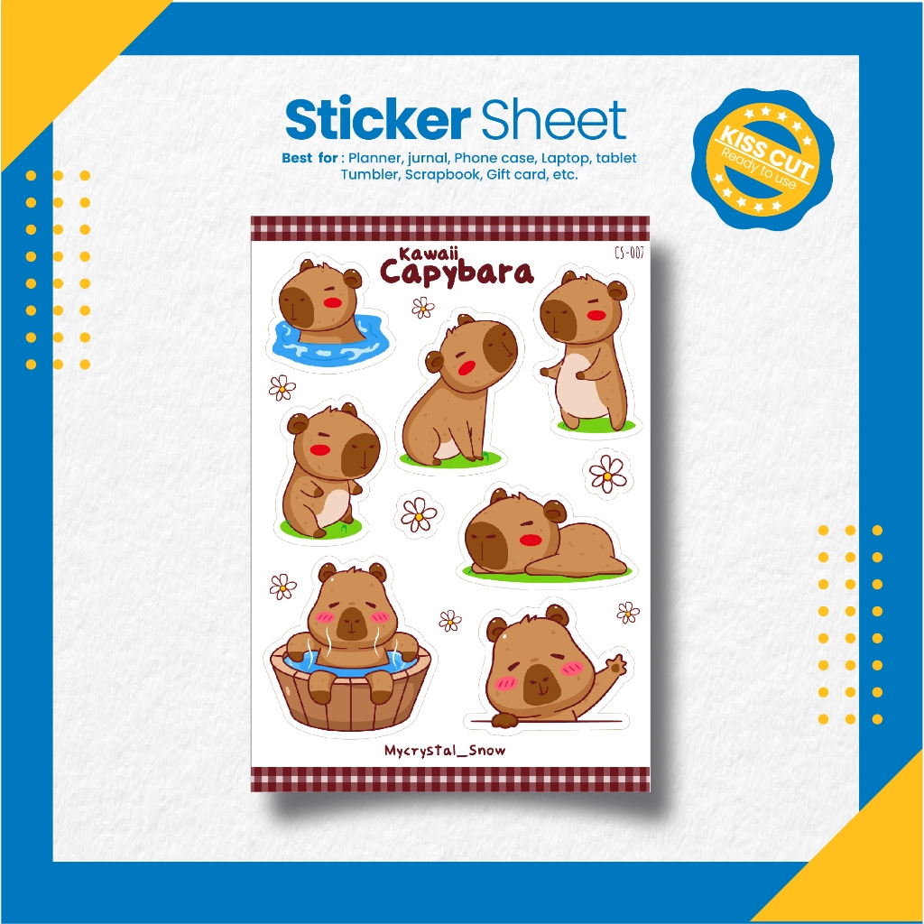 Stiker Lucu Capybara/ Cute Capybara Sticker Sheet [CS-007]