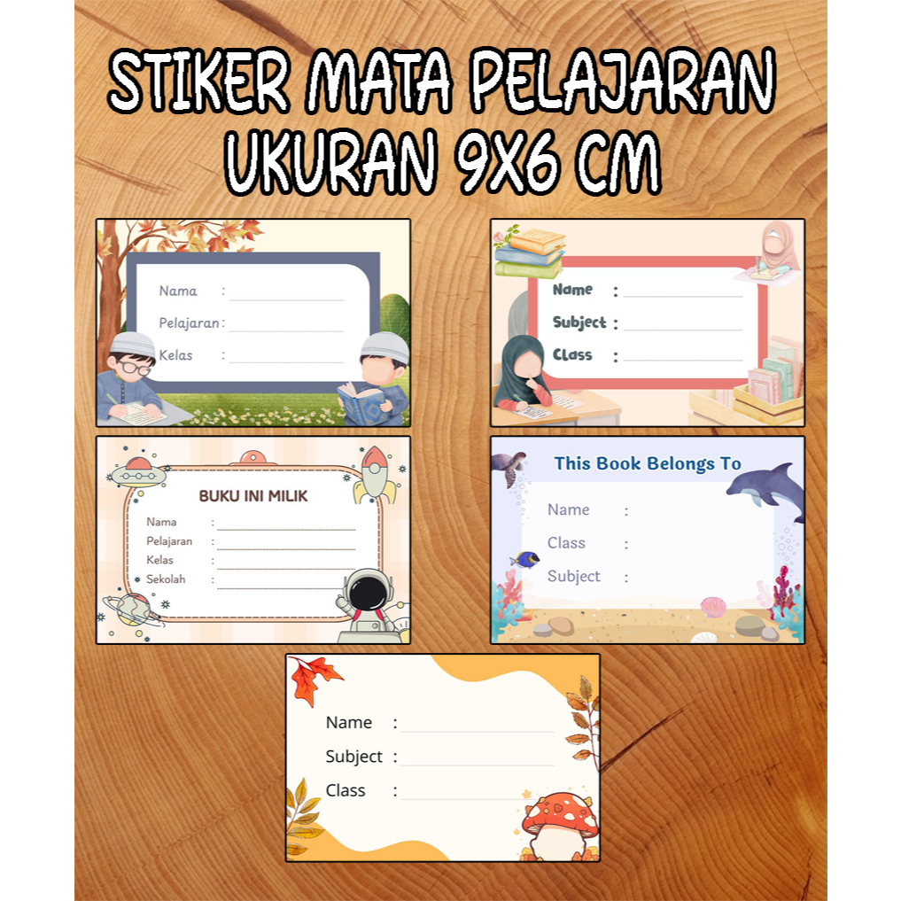 Stiker Mata Pelajaran 9 x 6 cm ( berbentuk seperti kartu nama ) dengan design menarik