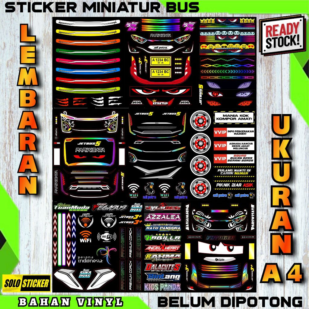 Stiker Bus Miniatur Basuri Bahan Vinyl Anti Air Ukuran A4