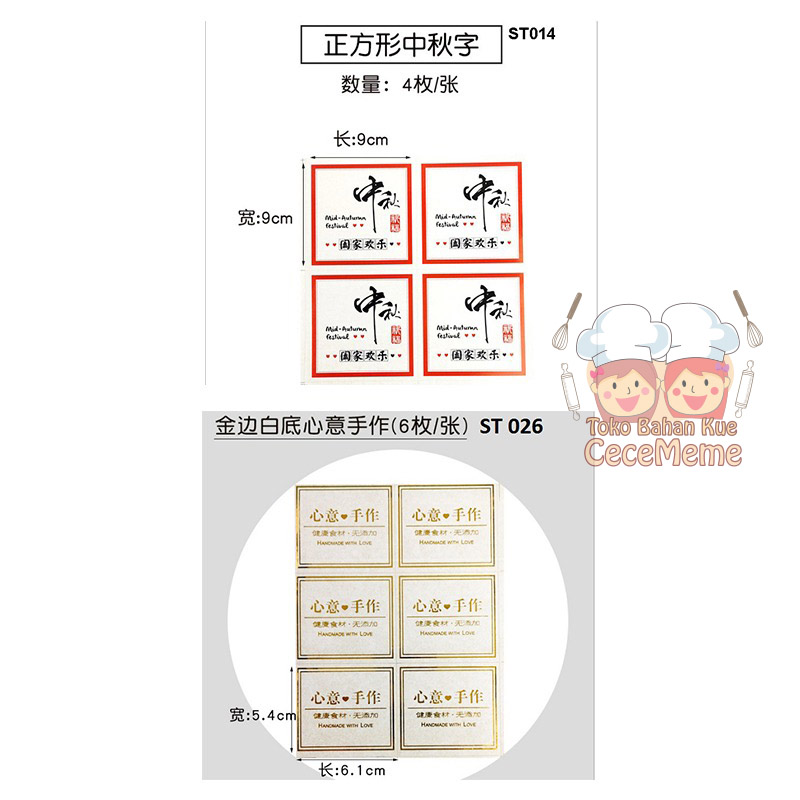 Stiker cocok untuk plastik kemasan mooncake , roti atau cookies, kue, bolu, donat, dll
