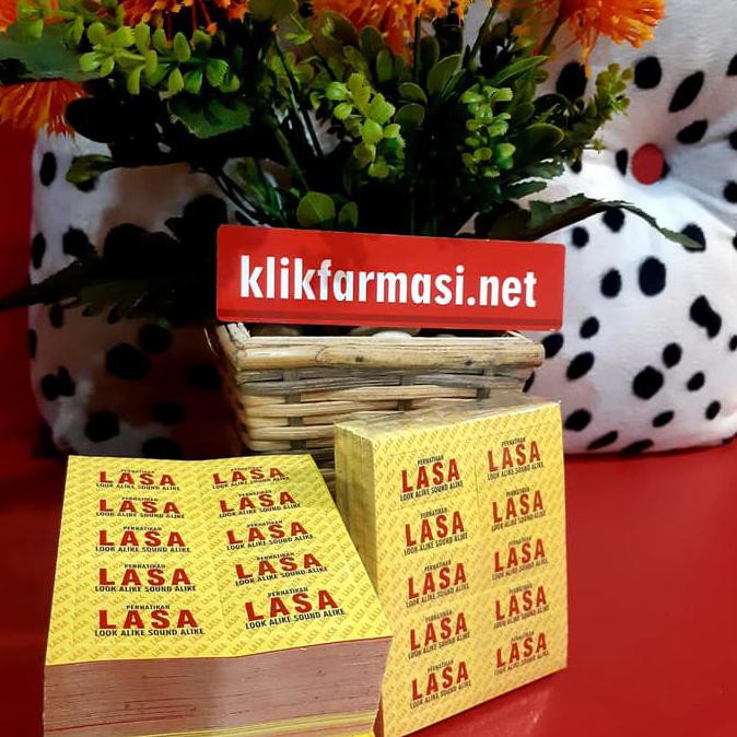 **Uk. utk 1 stiker LASA : 3.5 cm x 2 cm ukuran ini sangat pas dg box obat dan tidak akan menutupi nama. Jika anda menggunakan stiker tidak sesuai dipastikan akan mengganggu krna justru pemasangan stiker dapat menghalangi penglihatan petugas membaca nama obat.