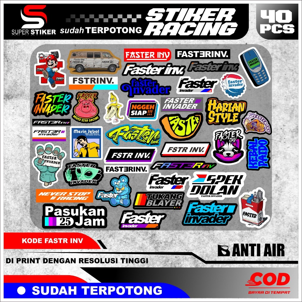 Stiker Racing Super Sticker Faster Inv. sudah terpotong