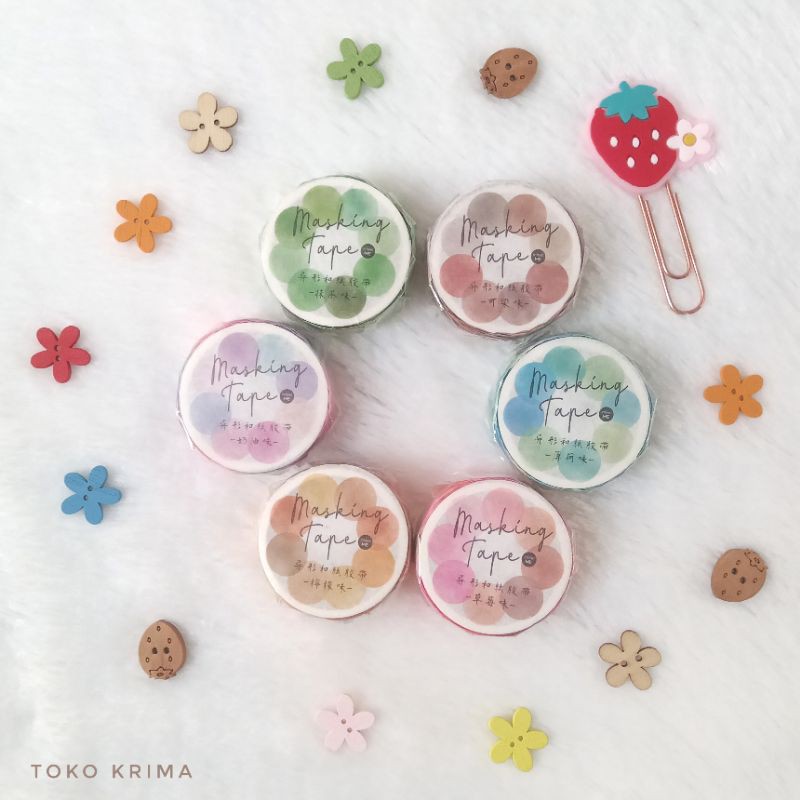 Stiker dalam kemasan roll yang satu roll nya berisi sekitar 100 stiker bulat semi transparan dengan kombinasi warna campur.