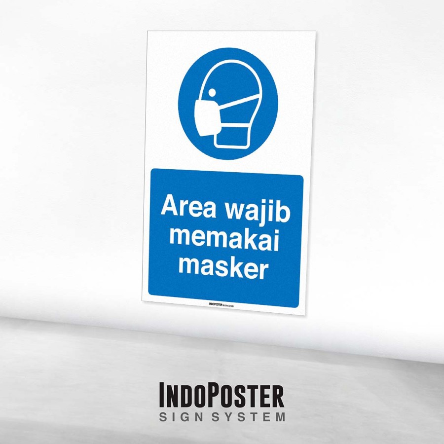 Stiker Safety Sign Rambu K3 ISO Area Wajib Memakai Masker
