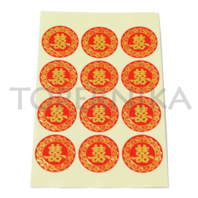 Stiker Shuang Xi untuk ditempel di buah-buahan, makanan kaleng atau isi seserahan sangjit.